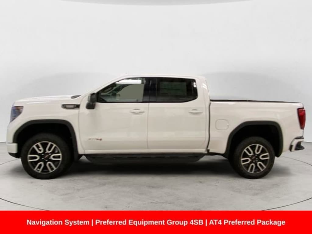 120-Volt Bed Mounted Power Outlet, 120-Volt Interior Power Outlet, 2 Charge/Data USB Ports Inside Center Console, 2 Type-C Charge-Only Rear USB Ports, 2 USB Ports, 220 Amp Alternator, AT4 Preferred Package, Auto-Locking Rear Differential, Black Chrome Grille Insert Bars, Color-Keyed Carpeting Floor Covering, Deep-Tinted Glass, Electric Rear-Window Defogger, Floor-Mounted Center Console, Front Prem Floor Liners w/Removable Carpet Insert, Front Rain-Sensing Wipers, HD Surround Vision, Heated 2nd Row Outboard Seats, Heated Driver & Front Outboard Passenger Seating, Heavy-Duty Air Filter, Hill Descent Control, Hitch Guidance, Hitch View, In-Vehicle Trailering System App, Integrated Trailer Brake Controller, Keyless Open & Start, LED Cargo Area Lighting, Memory seat, Navigation System, OnStar Services Capable, Perimeter Lighting, Power Door Locks, Power driver seat, Power Front Passenger Windows w/Express Up/Down, Power Front Windows w/Driver Express Up/Down, Power Rake & Telescoping Steering Column, Power Rear Windows w/Express Down, Power Sliding Rear Window w/Rear Defogger, Power Sunroof, Preferred Equipment Group 4SB, Premium Bose 7-Speaker Sound System, Push Button Start, Rear Cross Traffic Braking, Rear Pedestrian Detection, Rear Prem Floor Liners w/Removable Carpet Insert, Rear Wheelhouse Liners, Red Recovery Hooks, Remote Vehicle Starter System, SiriusXM w/360L Trial Subscription, Spray-On Pickup Bedliner w/GMC Logo, Steering Wheel Audio Controls, Theft Deterrent System (Unauthorized Entry), Trailer Camera Provisions, Trailer Side Blind Zone Alert, Trailering Package, Ultrasonic Front & Rear Park Assist, Universal Home Remote, Ventilated Driver & Front Passenger Seats, Wi-Fi Hotspot Capable, Wireless Charging.