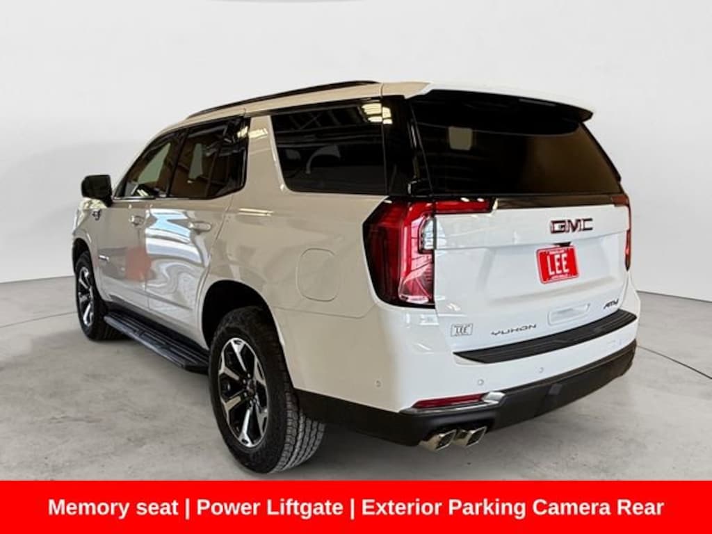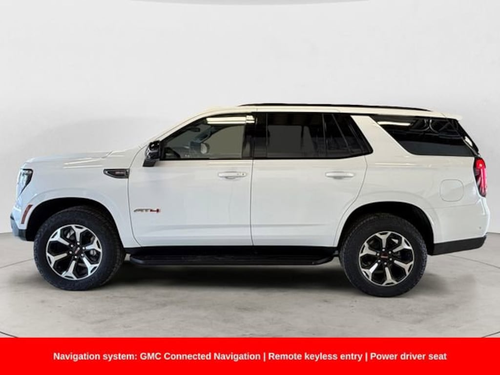Summit White 2026 GMC Yukon AT4 EcoTec3 5.3L V8 10-Speed Automatic with Overdrive 4WD3rd row seats: split-bench, Exterior Parking Camera Rear, Heated Driver and Front Passenger Seats, Heated rear seats, Heated steering wheel, Memory seat, Navigation system: GMC Connected Navigation, Power driver seat, Power Liftgate, Remote keyless entry. Pricing does not include tax, title or $649 dealer doc fee.
